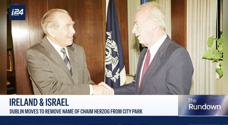 By Rachel Avraham Dublin’s decision to halt plans to rename one of its public parks after former Israeli President Chaim Herzog following accusations of