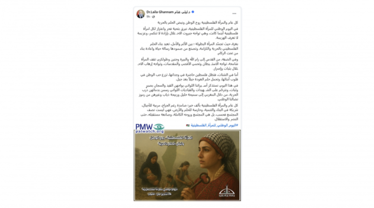 According to a recent report in Palestinian Media Watch, “the Palestinian Authority used International Women’s Day to glorify the memory of female terrorists and the