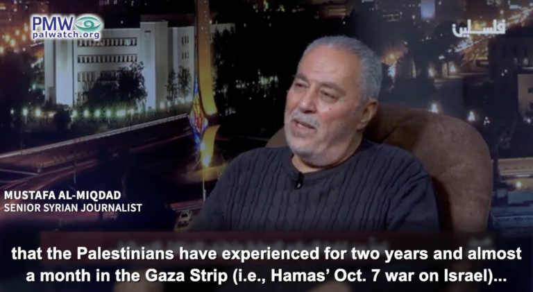 According to Palestinian Media Watch, “One of PA Chairman Mahmoud Abbas’ top aides, his Advisor on Religious Affairs Mahmoud Al-Habbash, still celebrates Hamas’ massacre and
